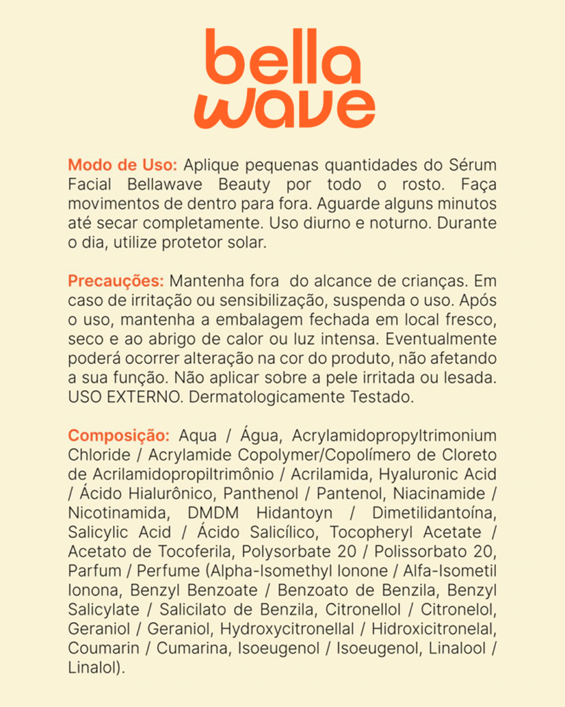 O Sérum Facial Bellawave possui uma combinação exclusiva de ativos dermatológicos de alta performance: